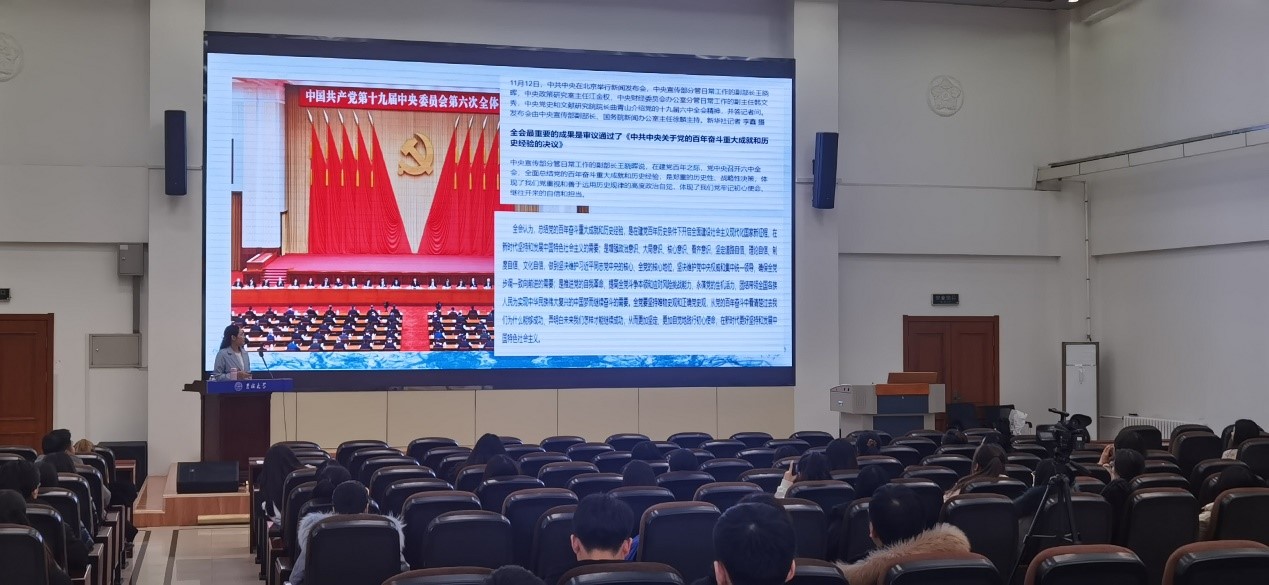 为深入学习贯彻党的十九届六中全会精神,提升广大研究生思想政治素质,积极响应校党委研究生工作部工作要求,2021年12月13日,娱乐城 邀请娱乐城 博士生讲师团讲师李天娇博士于数学楼二楼报告厅进行了十九届六中全会精神学习教育宣讲。本次宣讲的主题为“总结百年奋斗史•接续赶考新时代”——新中国以来国家领导人新闻发布的机制演变与基本经验”,娱乐城研究生党支部党员、预备党员、积极分子参与了此次宣讲活动。