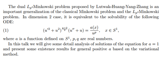 报告题目:The Dual LP-minkowski problem in dimension 2